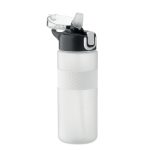 Gourde en RPET avec poignée en silicone, couvercle à rabat en PP et fermeture de sécurité. Paille intégrée. Anti fuite. Capacité : 700 ml.